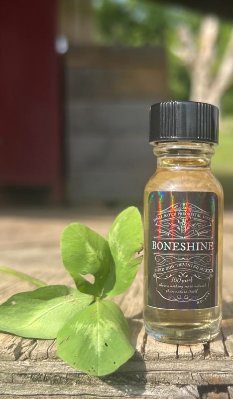 BoneShine Shed Liquor is an all natural deer gland scent for training your shed dog to find antlers.